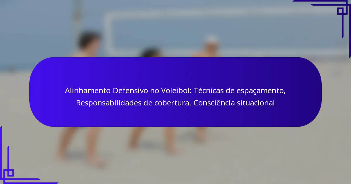 Táticas avançadas para melhorar o alinhamento defensivo no voleibol focam no espaçamento eficaz, nas responsabilidades de cobertura e na consciência situacional. Ao implementar estas estratégias, as equipas podem melhorar o seu desempenho defensivo e antecipar melhor os ataques dos adversários.