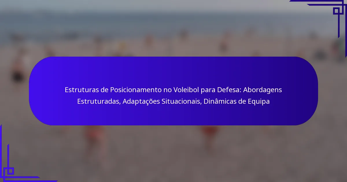 Os quadros de posicionamento defensivo são métodos sistemáticos que as equipas utilizam para organizar os seus jogadores em campo durante as jogadas defensivas. Estes quadros ajudam os jogadores a compreender os seus papéis e responsabilidades, facilitando uma melhor comunicação e coordenação. Ao estabelecer um posicionamento claro, as equipas podem responder de forma mais eficaz aos ataques dos adversários.